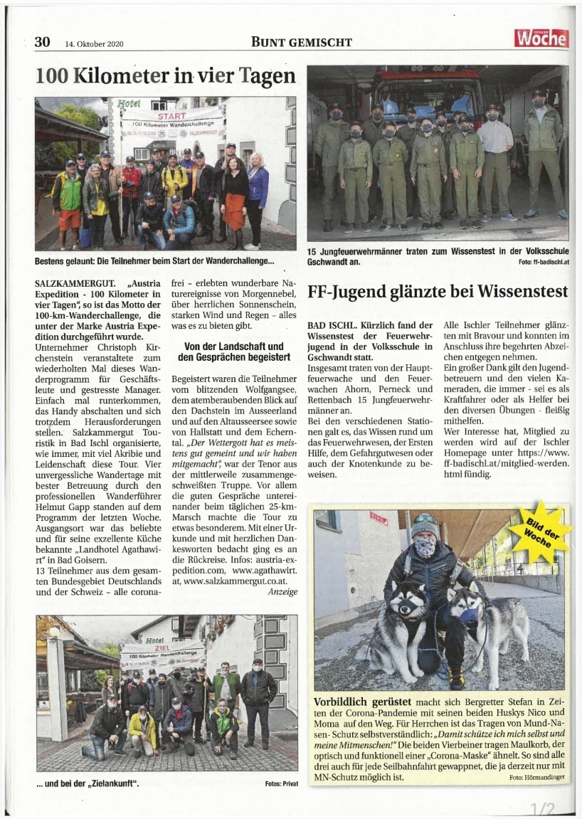 Presseartikel in der regionalen Zeitung vom Salzkammergut über unsere 100 KM Wanderchallenge: